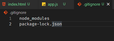 이렇게 하면 node_modules 이라는 라이브러리 파일들이 모아져 있는 폴더와, package-lock.json (아마 백업폴더?)가 깃에 올라가지 않을 것입니다.